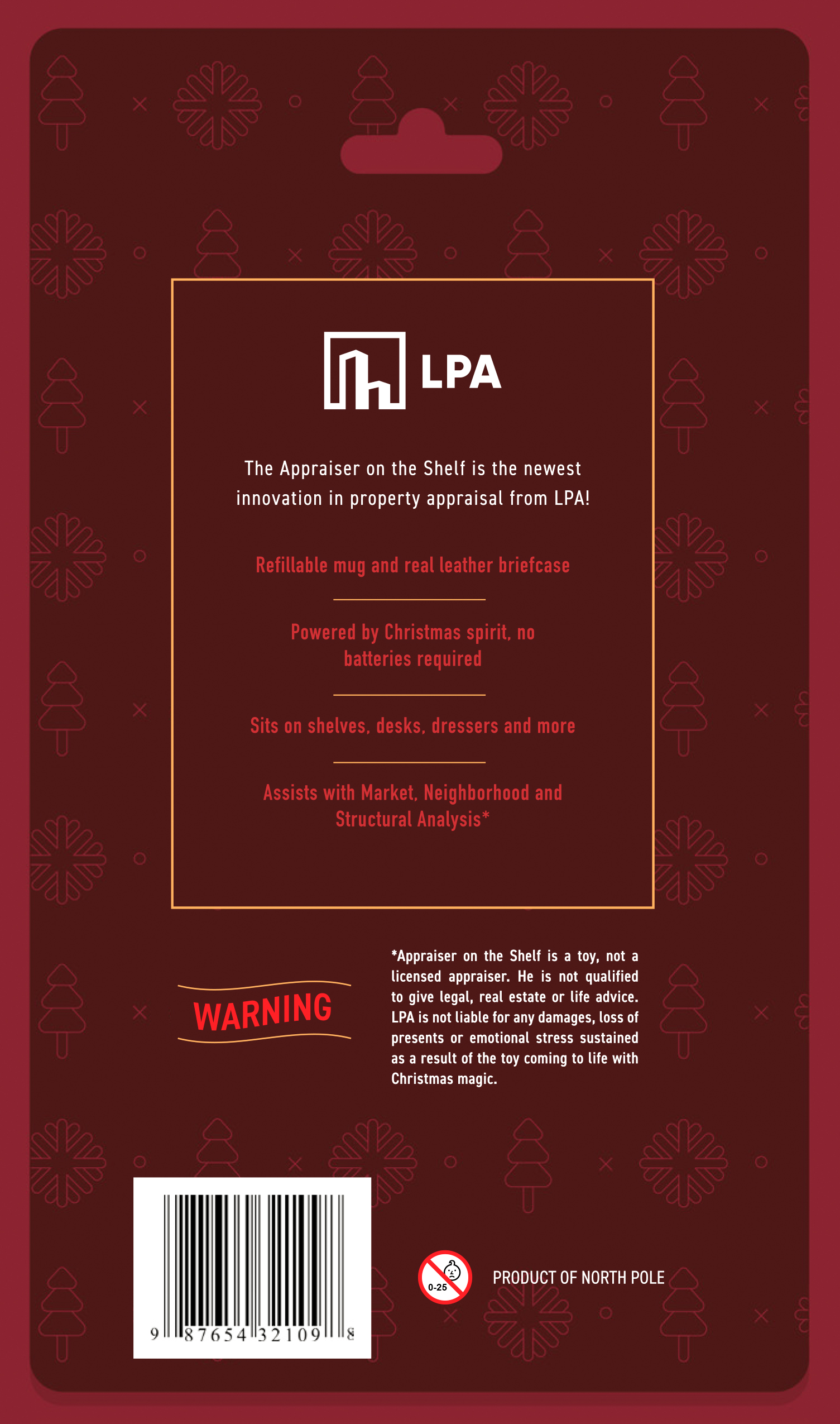 LPA is relentlessly focused on serving their clients with expert property valuations and innovative solutions. For their 2019 holiday card, it was only right to introduce the world to their latest innovation: The Appraiser on the Shelf. We dreamt up the Elf on the Shelf’s less famous, yet much more professional cousin and brought him to life through custom illustrations. Once he was grown and ready, the trusted elfin took flight from the workshop to spread laughter, cheer and the most festive appraisal advice.